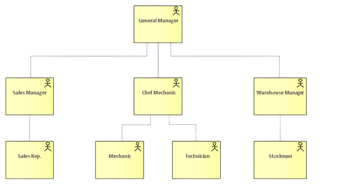 The organizational structure in an architecture is often expressed in actors. This addresses the “who” aspect by describing those who interact with the elements in the architecture. These actors may be roles, departments, companies or other types of organisational entities.