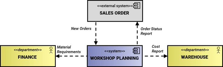 Interactions between the system and other systems provide the foundation for designing integration specifications. The architect can identify information flows at an early stage in the design process and assess opportunities or limitations on the architecture. - Facilitates Domain Thinking